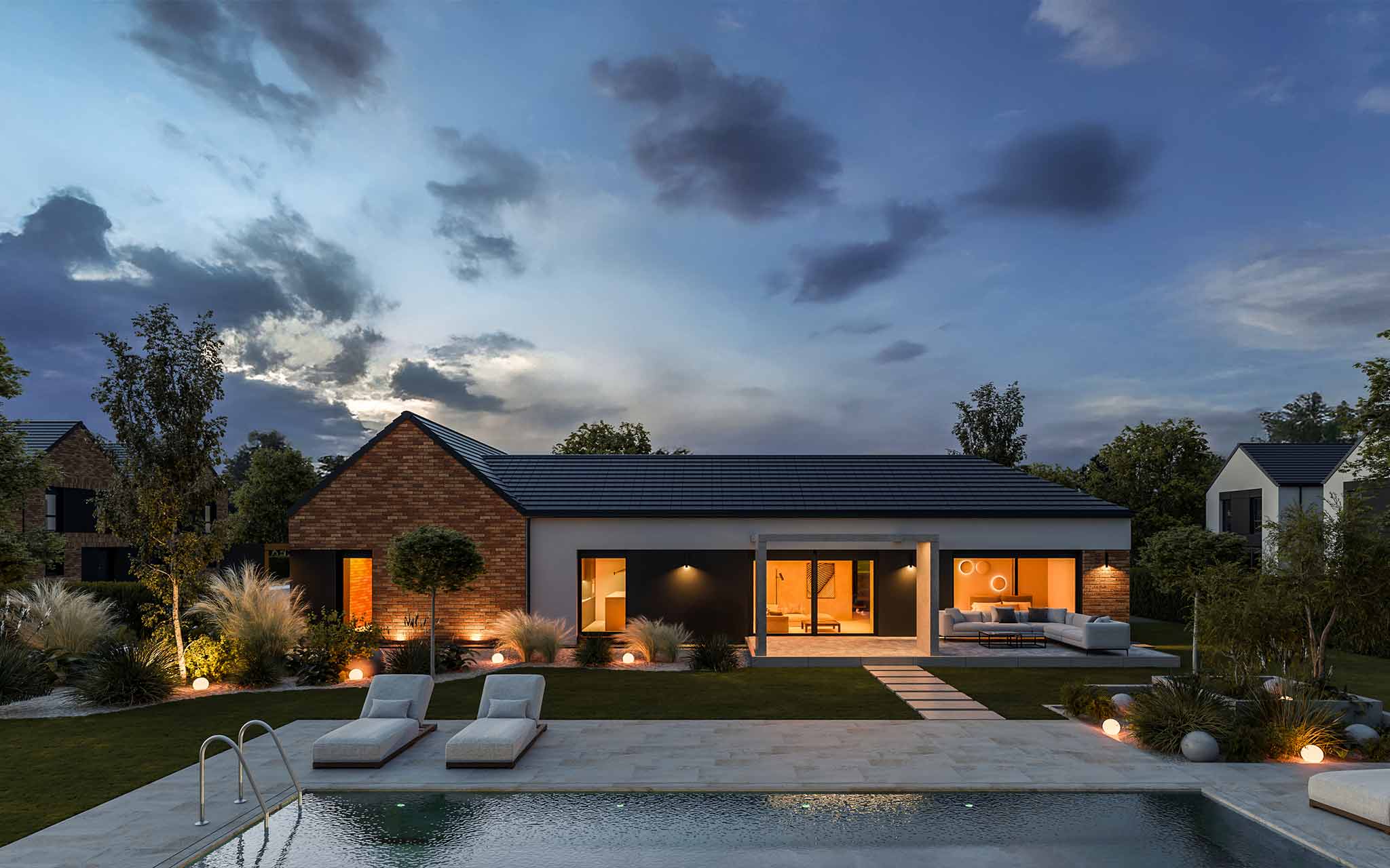 Dom parterowy z dużą swobodą projektowania układów pomieszczeń i ogrodu