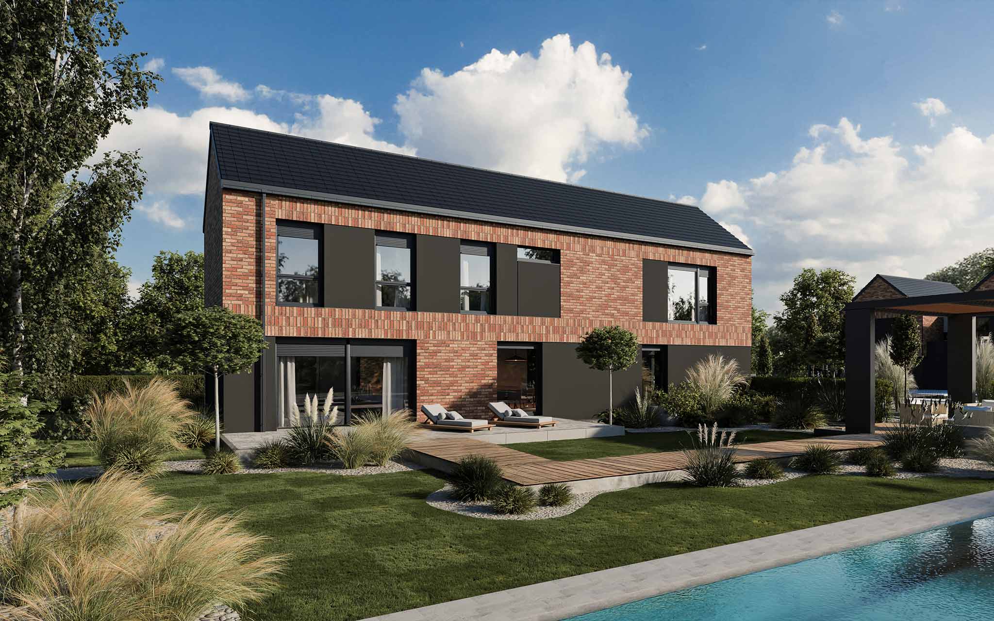 Przedstawione wizualizacje nie stanowią oferty handlowej, są poglądowe. Jednocześnie dążymy do tego, aby domy na Osiedlu Koncept były jak najbardziej zbliżone do tych przedstawionych na wizualizacjach.