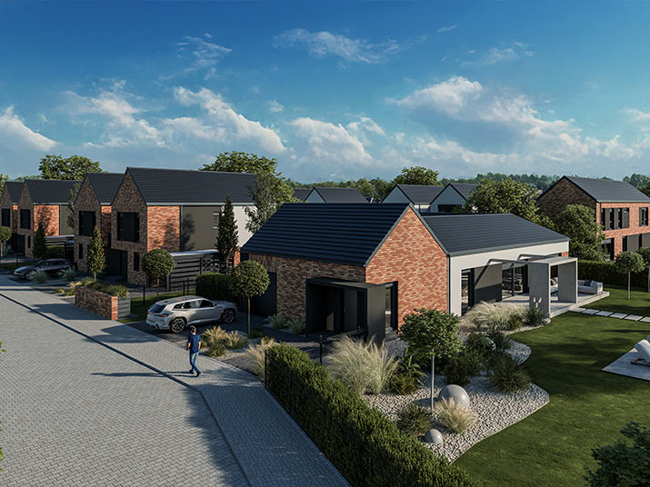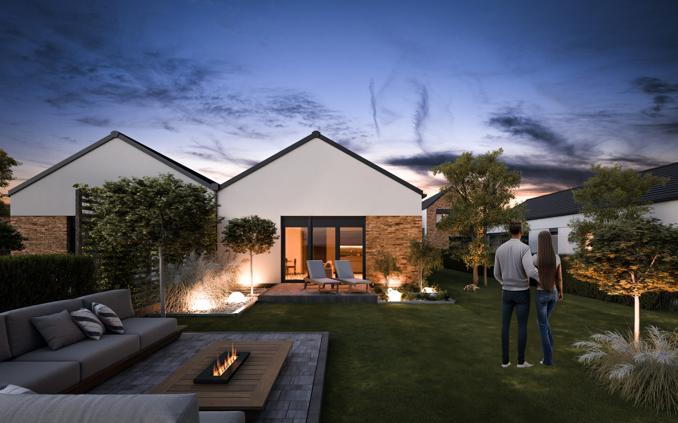 Przedstawione wizualizacje nie stanowią oferty handlowej, są poglądowe. Jednocześnie dążymy do tego, aby domy na Osiedlu Koncept były jak najbardziej zbliżone do tych przedstawionych na wizualizacjach.